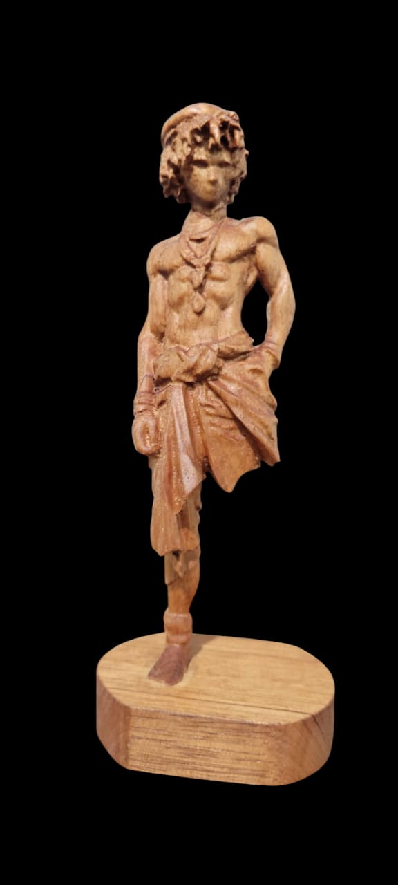 Produto entalhado em madeira maciça, podendo ser pintado ou na madeira crua, dependendo da madeira usada pode ter uma leve variação nas cores. Produto com 17cm. Perfeito para presentear ou decorar sua casa.
